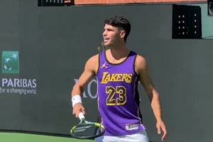 這是繼此前備戰(zhàn)澳大利亞網(wǎng)球公開賽時(shí)身穿詹姆斯球衣訓(xùn)練后,阿爾卡拉斯再次穿上詹姆斯球衣進(jìn)行賽前訓(xùn)練。
