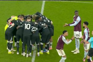 切爾西的球員們圍在中圈喊話助威,這也導(dǎo)致維拉無法正常開球,奧納納、沃特金斯都向裁判抱怨切爾西的行為,現(xiàn)場的維拉球迷也發(fā)出了噓聲。