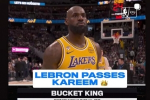賽后,詹姆斯轉(zhuǎn)發(fā)了多個慶祝自己破紀錄的海報。
