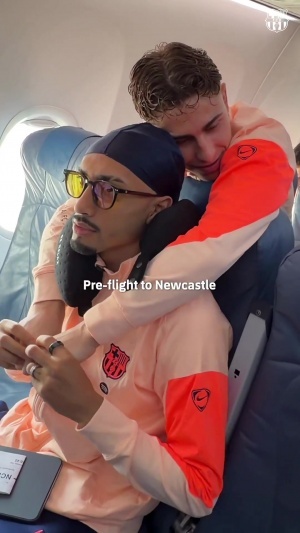 體育資訊03月08日訊 巴薩官方發(fā)布球隊(duì)乘機(jī)抵達(dá)英國(guó)紐卡斯?fàn)柕囊曨l,亞馬爾下飛機(jī)后對(duì)著鏡頭調(diào)侃道:我現(xiàn)在只說(shuō)英語(yǔ)。