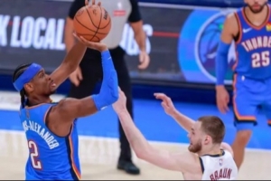 今天掘金最要命的是:即便亞歷山大、杰威和切特都不在,雷霆也能靠五外陣和掘金周旋。掘金因?yàn)榧s基奇(和瓦蘭休納斯)的存在,無(wú)法換防,沉退則挨投,單防則亞歷山大戲耍布勞恩;后半段夾擊持球人則只能靠輪轉(zhuǎn):于是杰林·威廉姆斯第四節(jié)前半節(jié)就9分。