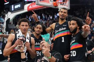 馬刺目前48勝17負(fù),西部第二,距離第一的雷霆2.5個(gè)勝場(chǎng)。