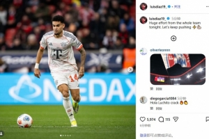 體育資訊3月15日訊 德甲第26輪,拜仁1-1戰(zhàn)平勒沃庫森。賽后,拜仁邊鋒路易斯·迪亞斯在社交媒體發(fā)文,鼓勵(lì)球隊(duì)。