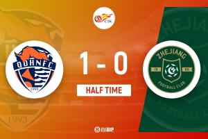 上半場補(bǔ)時(shí)4分鐘。半場戰(zhàn)罷,青島海牛1-0浙江隊(duì)。
