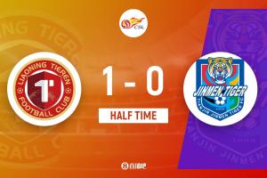 上半場補時3分鐘。半場戰(zhàn)罷,遼寧鐵人1-0天津津門虎。