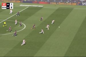 比賽第83分鐘,巴列卡諾反越位戰(zhàn)術打成,埃斯皮諾得球,此時巴列卡諾4人直面巴薩門將霍安·加西亞,但最終埃斯皮諾的射門打高了。