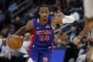 體育資訊3月24日訊 NBA常規(guī)賽,活塞半場65-52領(lǐng)先湖人。