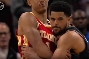 裁判開(kāi)始吹哈里斯防守犯規(guī),活塞挑戰(zhàn)成功,杰倫·約翰遜進(jìn)攻犯規(guī)