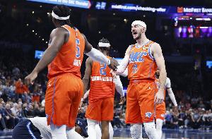 亞歷山大:“總得有個(gè)平衡。在第四節(jié)的最后一攻,我迎著兩個(gè)人投籃,僅僅是因?yàn)槲腋杏X(jué)很好。所以這里總有個(gè)平衡。但我就是信任我的隊(duì)友,我每天都能看到他們的努力,我看到了他們?cè)诨@球場(chǎng)上的能力。我看到了他們打得多努力,有多拼,我看到了他們做出的所有不被注意的微小貢獻(xiàn)。當(dāng)他們處于那些時(shí)刻,并且準(zhǔn)備好去迎接那些時(shí)刻時(shí),他們配得上這些機(jī)會(huì)。歸根結(jié)底,如果他處于空位,他就會(huì)去投,就好像他之前連進(jìn)了10個(gè)一樣。這就是我欣賞卡魯索的地方。每一次他得到投籃機(jī)會(huì),他都會(huì)給自己一個(gè)進(jìn)球的機(jī)會(huì)。他已經(jīng)證明了這一點(diǎn),他可能投丟了前幾個(gè),但今晚他投進(jìn)了一個(gè)關(guān)鍵球。在去年的季后賽中,他投進(jìn)了無(wú)數(shù)個(gè)關(guān)鍵球。他證明了他配得上這些時(shí)刻,他享受這些時(shí)刻,并帶著十足的信心去迎接它們。所以他今晚投進(jìn)這一球,我一點(diǎn)也不驚訝?!?/p>