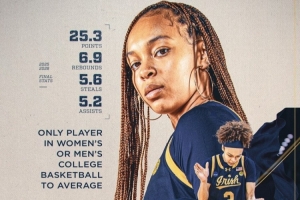 本賽季,希達(dá)爾戈場(chǎng)均可以拿到25.3分6.9籃板5.2助攻5.6搶斷。她是21世紀(jì)以來(lái)NCAA男女籃首位單賽季場(chǎng)均達(dá)到25+5+5+5的球員。