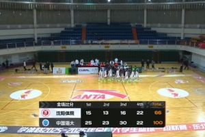 末節(jié)比賽,沈陽體院的表現(xiàn)沒有絲毫起色,前兩分半的時間里中國海大再打一波10-2的攻勢,分差直接突破四十分,比賽徹底失去懸念,最終中國海大100-66大勝沈陽體院。