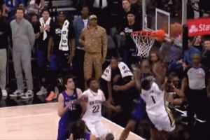 GIF-錫安關(guān)鍵一攻突破上籃遭遇考德威爾釘板大帽