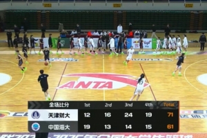 末節(jié)決戰(zhàn),李依坤上來帶領(lǐng)中國海大咬住比分,隨后中國海大連續(xù)失誤,陳雨欣繼續(xù)內(nèi)線取分,夏榮三分再中,天津財(cái)大9-0再次領(lǐng)先到雙位數(shù)領(lǐng)先,張榮荷雖然三罰全中再追分,但時(shí)間所剩無幾,最終天津財(cái)大71-61力克中國海大。