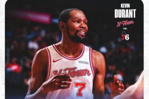 杜蘭特全場出戰(zhàn)37分44秒,18投10中(三分6中3)、罰球8中6,轟下全場最高29分外加7籃板5助攻。