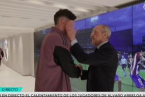 在與巴爾韋德握手時(shí),弗洛倫蒂諾輕輕給了巴爾韋德一巴掌,而在碰到貝林厄姆時(shí)則與其交流了幾句。