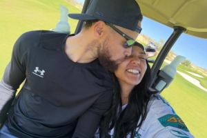 體育資訊2月22日訊 今日勇士球星庫里的妻子阿耶莎曬出自己與丈夫合照 。