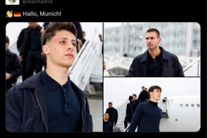 皇馬球員們已經(jīng)抵達慕尼黑,準備參加這場重要比賽,官方社媒曬出球員們的照片,德語配文:“你好,慕尼黑!”