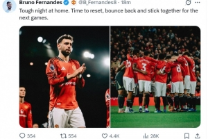 本場比賽B費送出精彩助攻幫助卡塞米羅破門,他也在個人社媒曬出本場照片鼓勵球隊,寫道:“主場經歷一場艱難的失利,現在是時候進行休整,我們會在下一場比賽團結一致重振旗鼓?!?/p>