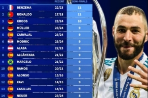 體育資訊4月15日訊 歐冠半決賽名額即將全部產(chǎn)生,德轉(zhuǎn)也盤點(diǎn)了自92/93賽季改制后參加歐冠半賽季次數(shù)最多的球員榜單,具體如下(次數(shù)相同按最近一次參賽時間排名):