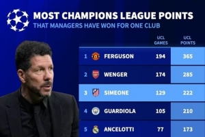 體育資訊4月15日訊 馬競在本輪歐冠總比分3-2淘汰巴薩,西蒙尼也延續(xù)了自己執(zhí)教馬競的出色表現(xiàn)。《轉會市場》統(tǒng)計顯示,他已躋身歐冠執(zhí)教單一俱樂部歐冠拿分榜前三。