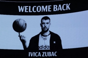 步行者中鋒、快船舊將祖巴茨來到現(xiàn)場,直覺巨蛋主場的大屏幕送上歡迎視頻!