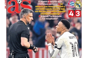 西班牙媒體《阿斯報》最新封面出爐,主標(biāo)題為“直到裁判決定一切”。