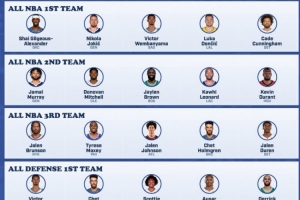 體育資訊4月17日訊 今天,美記Jake Weinbach曬出了其個(gè)人的賽季獎(jiǎng)項(xiàng)預(yù)測(cè)。重獲評(píng)獎(jiǎng)資格的東契奇與坎寧安雙雙進(jìn)一陣。