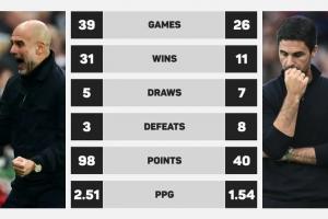 瓜迪奧拉vs阿爾特塔英超四月份執(zhí)教成績: