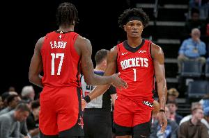 體育資訊4月17日訊 火箭球員阿門當(dāng)?shù)貢r間周四接受媒體采訪。
