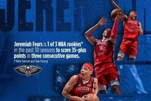 他也成為了過去30個(gè)賽季中,NBA僅有的三位新秀之一,能夠在連續(xù)三場(chǎng)比賽中每場(chǎng)砍下35+分。另外兩位是艾弗森和特雷·楊。