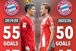 本賽季凱恩代表拜仁出戰(zhàn)42場(chǎng)比賽,已經(jīng)貢獻(xiàn)50粒進(jìn)球和6次助攻,距離萊萬在拜仁的最佳賽季2019/20賽季創(chuàng)下的47場(chǎng)55球還有5球。