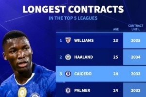 體育資訊4月17日訊 切爾西已經(jīng)官宣同凱塞多續(xù)約至2033年,《轉(zhuǎn)會(huì)市場(chǎng)》統(tǒng)計(jì)顯示他也并列當(dāng)前合同最長球員第三位。