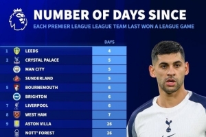 體育資訊4月17日訊 《轉(zhuǎn)會(huì)市場》統(tǒng)計(jì)了英超各隊(duì)距離上次在聯(lián)賽贏球的時(shí)間間隔,熱刺已接近4個(gè)月未能獲勝。
