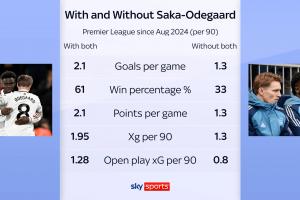 天空體育數(shù)據(jù)統(tǒng)計(jì)顯示,自2024年8月以來(lái),當(dāng)薩卡和厄德高同時(shí)出戰(zhàn)時(shí),阿森納英超場(chǎng)均打進(jìn)2.1球、勝率61%、場(chǎng)均2.1分、預(yù)期進(jìn)球值1.95、運(yùn)動(dòng)戰(zhàn)預(yù)期進(jìn)球值1.28。