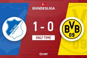 上半場補(bǔ)時(shí)6分鐘,霍村1-0多特。