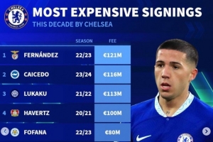 體育資訊4月19日訊 《轉(zhuǎn)會市場》統(tǒng)計了切爾西自2020年以來的最貴引援情況,4人轉(zhuǎn)會費(fèi)上億歐元。