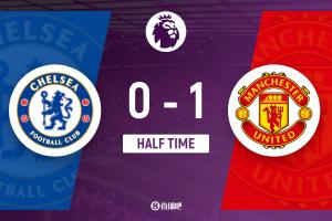 上半場傷停補時5分鐘,半場結(jié)束,切爾西暫0-1曼聯(lián)。