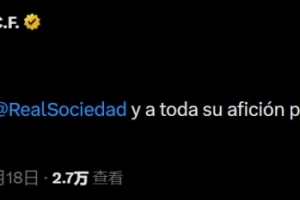 皇馬官方寫道:“祝賀皇家社會(huì)及其所有球迷?shī)Z得國(guó)王杯冠軍。”