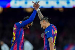 這將給巴薩一個機會:在國家德比中擊敗宿敵,從而鎖定衛(wèi)冕西甲冠軍。那樣的話,巴薩將在僅剩三輪聯賽的情況下領先皇馬12分。當然,如果兩隊在接下來三輪中拿到相同積分,無論具體結果如何,情況也依然如此。