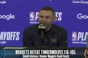 體育資訊4月19日訊 NBA季后賽首輪,掘金主場116比105擊敗森林狼,大比分1比0領(lǐng)先。賽后掘金主帥阿德爾曼接受了媒體采訪,以下為采訪全文。