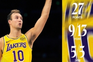 本場比賽肯納德13中9,三分5中5,罰球6中4砍下27分4籃板3助攻。