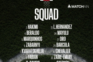 前鋒:7-克瓦拉茨赫利亞、9-貢薩洛·拉莫斯、10-登貝萊、14-杜埃、29-巴爾科拉