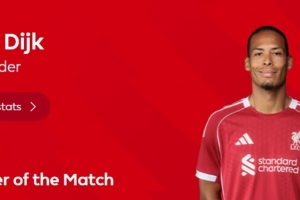 本場比賽范戴克在傷停補時階段打進絕殺,此外還有7次解圍,賽后當選英超官方球迷票選全場最佳球員。