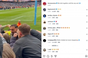 超巨失誤+神撲!多納魯馬社媒曬同球迷擁抱照:我們團(tuán)結(jié)到最后一刻