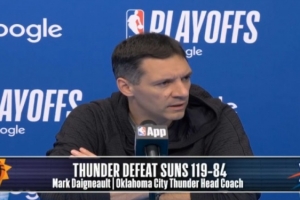 體育資訊4月20日訊 NBA季后賽西部首輪G1,雷霆119-84大勝太陽35分,戴格諾特賽后接受了媒體采訪,以下是完整采訪內(nèi)容。