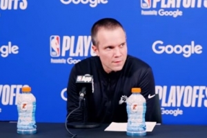 記者問(wèn):“最后一個(gè)問(wèn)題。教練,你能談?wù)勄榫w上的轉(zhuǎn)變嗎?周五晚上戰(zhàn)勝勇士是一場(chǎng)情緒激昂的勝利,然后進(jìn)入這場(chǎng)比賽,這是你們的第一場(chǎng)季后賽,你能談?wù)勗谥苋谋荣惽叭绾沃匦抡{(diào)整,讓隊(duì)員們準(zhǔn)備好嗎?”