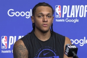 班凱羅:過去發(fā)生的事情,你沒有任何辦法去改變。說到底,我們現(xiàn)在站在了季后賽的舞臺上,我們有機會去實現(xiàn)我們從去年十月起就設(shè)定的目標(biāo)。所以就像我說的,你不能太糾結(jié)于常規(guī)賽發(fā)生的事情和那些挫折,你必須把大家團結(jié)起來,意識到我們現(xiàn)在全員健康,我們感覺整個團隊非常有默契。我們在對陣黃蜂的比賽中找到了防守、能量和溝通的感覺,我們知道只要能延續(xù)這種表現(xiàn),無論對手是誰,我們每晚都有機會贏球。所以,這絕對是一個全新的賽季,全新的能量。
