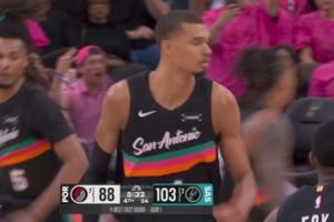 GIF-文班撤步三分再轟進(jìn)!33分超鄧肯!隊(duì)史季后賽首秀得分紀(jì)錄!