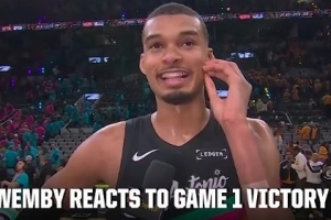 體育資訊4月20日訊 NBA季后賽首輪,馬刺主場(chǎng)111比98擊敗開拓者,大比分1比0領(lǐng)先。賽后文班亞馬在場(chǎng)邊及發(fā)布會(huì)接受了采訪,以下為采訪全文。