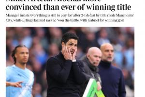 體育資訊04月20日訊 阿森納1-2不敵曼城,賽后阿爾特塔被問到對奪得英超冠軍的信念,他的回答登上了各大媒體的頭條。